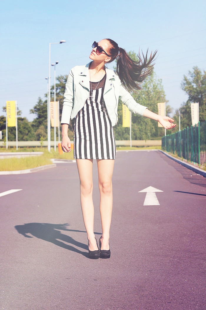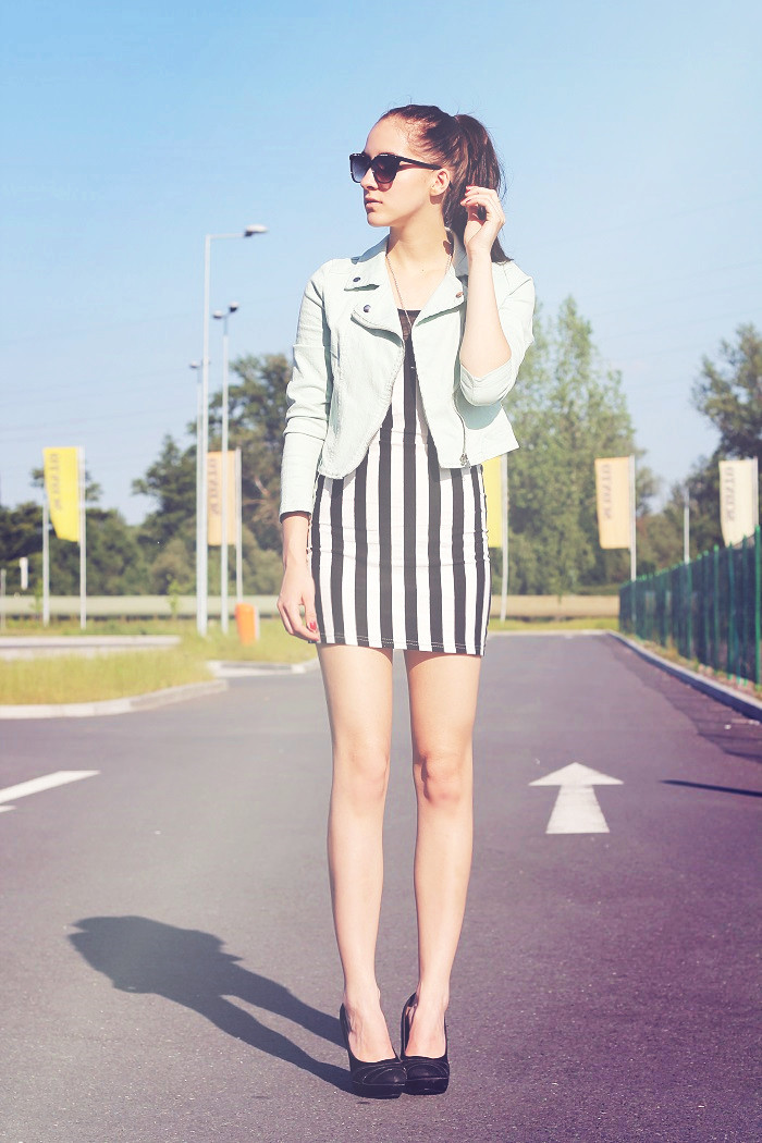 Pruhy jsem si oblíbila a mám ještě jedny šaty, které vám ukážu brzy. Tyhle jsem zkombinovala jen s mentolovou bundičkou, ale stejně jsem ji pak odložila, protože bylo krásně ♥